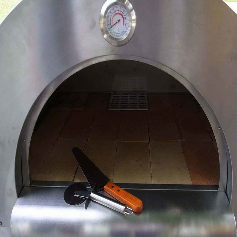 - Нержавеющая сталь и конструкция кирпича: Печь сделана из высококачественных нержавеющей стали и кирпича, обеспечивающ стойкость и долговечность.